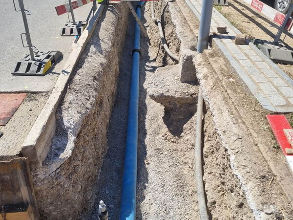 Die bestehende Wasserleitung DN150 musste aufgrund ihres Alters und Zustands vollständig erneuert werden. Im Rahmen des Projekts wurde eine neue Wasserleitung aus duktilem Gussrohr mit Faserzementumhüllung auf einer Länge von 430 Metern verlegt und erfolgreich in Betrieb genommen.